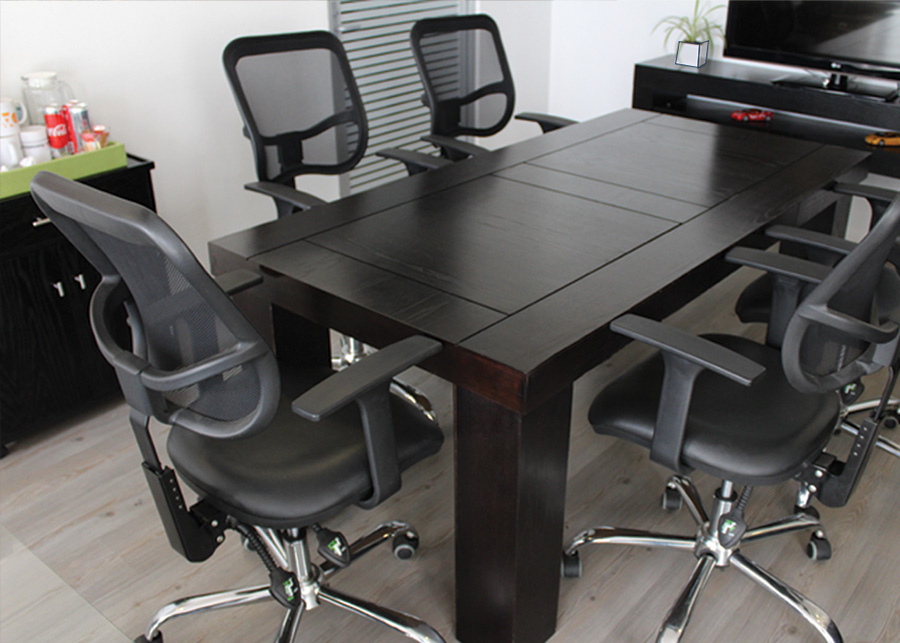 El acomodo de la cubierta en la mesa de juntas; piezas con vetas encontradas, le da un toque muy moderno y cautivador a la vista y tacto.